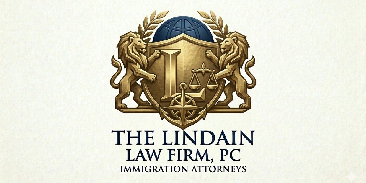 Our logo communicates that The Lindain Law Firm is a strong, courageous defender (Lions/Shield) that provides expert guidance (Compass) and stability (Anchor) for people moving from different parts of the world (Globe) to the United States, ensuring they are treated with fairness (Scales) as they strive for a successful outcome (Laurels).